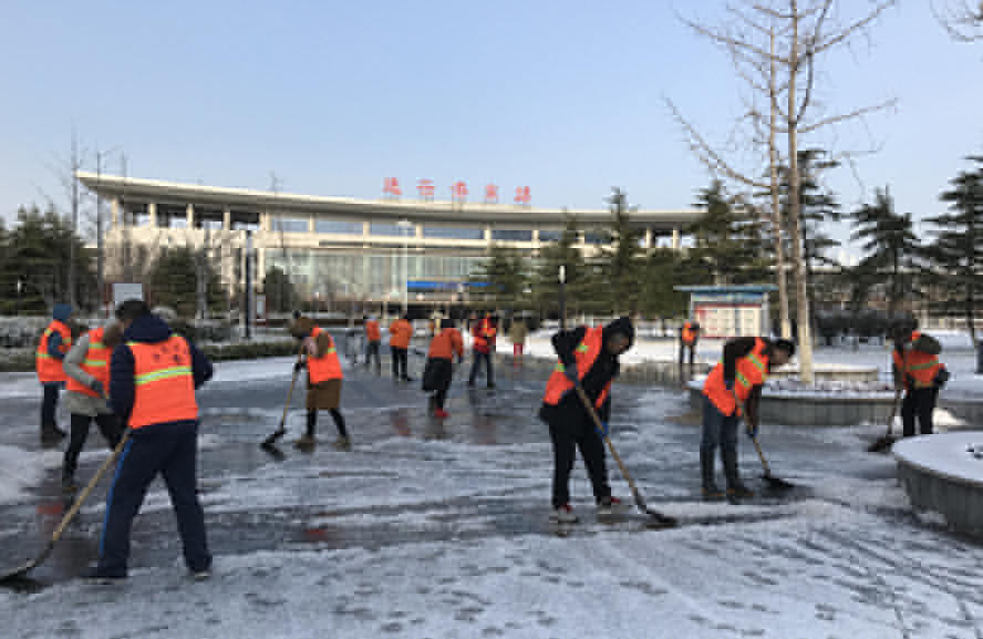 現值嚴寒時節,積雪容易導致路面結冰,給上下班的交通和居民出行帶來嚴重影響,為確保人、車流高峰期間交通安全,華茂公司領導班子精心組織、緊密協調,31日天一亮,公司領導班子分赴各基層單位坐陣指揮,廣大干部職工奮戰在清冰除雪一線,大家揮動著雪鏟、鐵鍬、掃把等清雪工具除冰掃雪,對交通壓力較小的路段采用人工堆積清理和車輛集中清運相結合的方式進行掃雪;對交通壓力較大的路段運用大型除雪機械進行清雪作業,為疏通交通提供保障。
