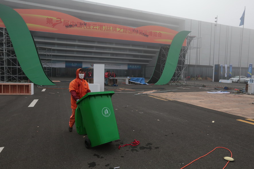 另外,該公司垃圾清運項目部將承擔“連博會”期間的各類垃圾清理清運任務,目前已將100余只垃圾桶放置到展館規定地點,2臺垃圾清運車也準備就緒待命。