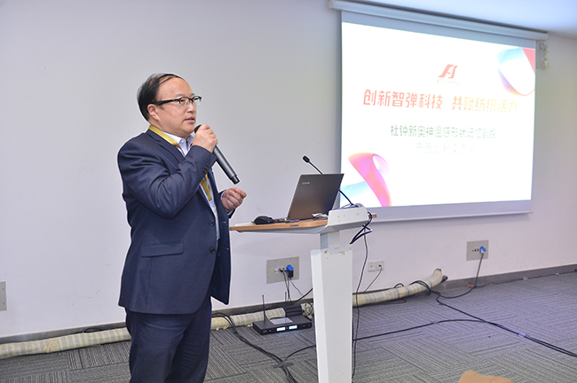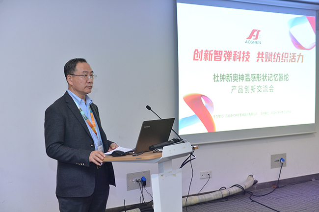交流會上,杜鐘氨綸研發(fā)部曾登部長就奧神溫感形狀記憶氨綸的開發(fā)背景、產品特性以及應用前景作了深入解析。參會嘉賓在對溫感形狀記憶氨綸有了較為清晰的認知和了解后,圍繞該產品的功能特點并結合自身產品開發(fā)方向,展開了一場智慧碰撞,對溫感形狀記憶氨綸的創(chuàng)新應用提出了獨到的建議和暢想。
