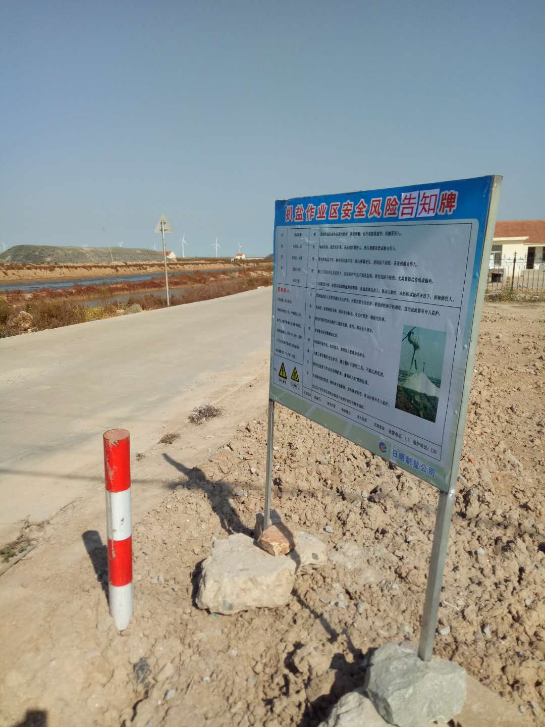 市、縣安監局領導在對新河制鹽分公司生產場所進行安全督查時指出扒鹽現場缺乏閑人免進的標志牌、大廩沒有禁止攀爬,防摔傷標志牌等,10月29日上午,新河制鹽分公司協同投資公司安全部門進行了整改,首先在道路交通路口樹立扒鹽作業區安全風險告之牌,在扒鹽現場樹立扒鹽作業區安全風險辨識牌、當心觸電、當心機械傷人、廩高危險,禁止攀爬標志牌,其次在九班變壓器用圍欄,張貼有電危險、禁止攀爬標志,進一步提高了職工的安全系數,增強了員工安全操作技能,為企業下一步的安全生產奠定了堅定的基礎。(江德前)