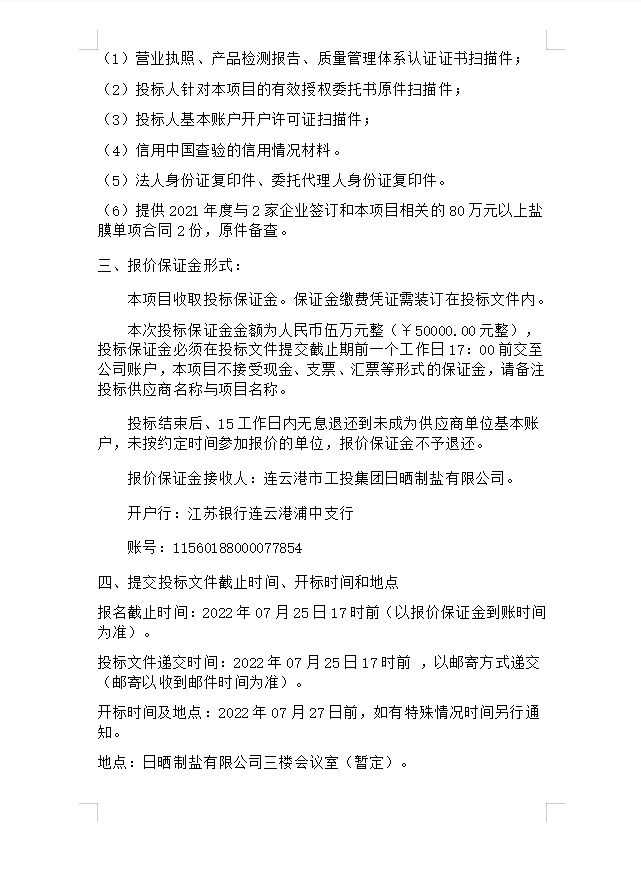 鹽膜招標公告(二次)