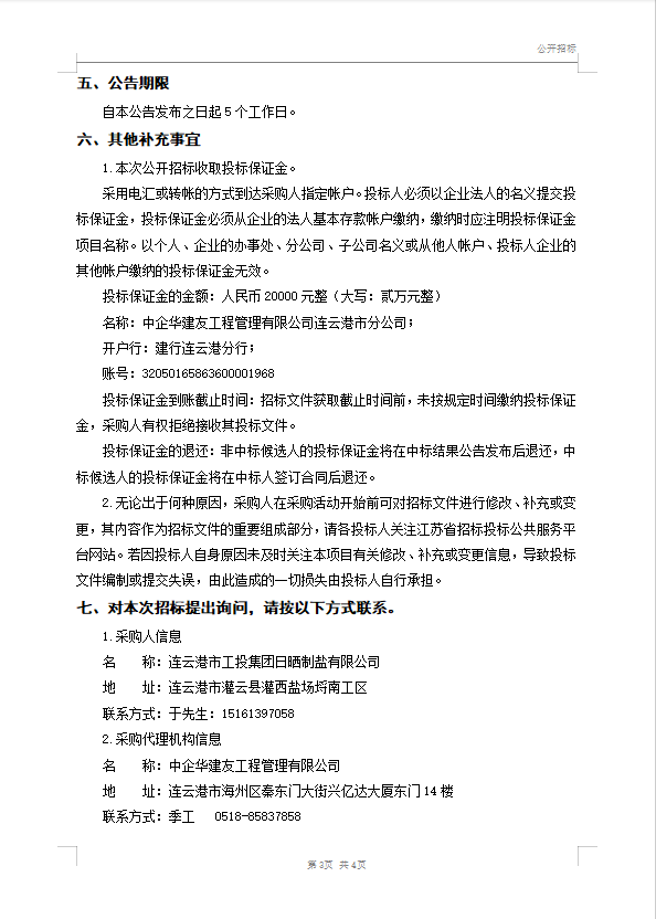 日曬制鹽公司 液體氯化鈣(鈣液)采購招標公告