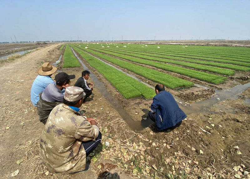 隨著氣溫攀升,5月21日,大新農場已有種植戶開始對軟盤育秧的水稻小苗揭去覆蓋的薄膜,農場班子成員奔走在田間地頭,查看秧苗生長情況,做好技術指導,全程保障水稻生長,確保水稻增產增收。(王 璐)