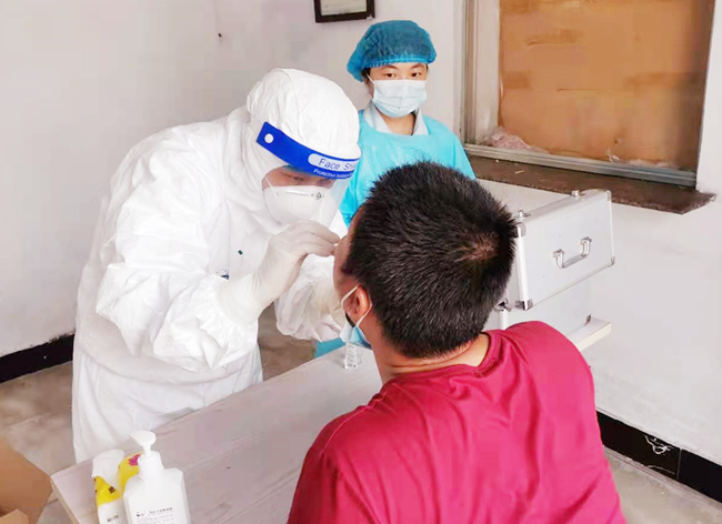 ? ? ? ?在疫情防控的關(guān)鍵階段,青口鹽場(chǎng)衛(wèi)生服務(wù)站積極響應(yīng)上級(jí)號(hào)召和指示,迅速設(shè)立核酸檢測(cè)點(diǎn),對(duì)轄區(qū)內(nèi)外市來(lái)連返連人員全員進(jìn)行核酸檢測(cè)。根據(jù)疫情防控要求,檢測(cè)點(diǎn)責(zé)任醫(yī)生和護(hù)士身穿三級(jí)防護(hù)服,依次對(duì)被檢測(cè)人員登記,測(cè)溫、驗(yàn)碼、詢問(wèn)癥狀體征和流行病學(xué)史,嚴(yán)格執(zhí)行規(guī)范化檢測(cè)程序。此外,檢測(cè)點(diǎn)安排專人每日嚴(yán)格落實(shí)場(chǎng)所消殺工作,確保檢測(cè)場(chǎng)所安全。