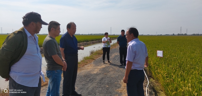 9月24日中午,江蘇省農(nóng)業(yè)科學(xué)院蘇北科技服務(wù)中心主任楊四軍研究員一行到大新農(nóng)場察看“優(yōu)香粳”水稻的生長情況,與農(nóng)場負(fù)責(zé)人及條田工就優(yōu)香粳當(dāng)前生長情況及生長后期的注意事項(xiàng)提出了指導(dǎo)性建議。優(yōu)香粳是由省農(nóng)科院提供的優(yōu)質(zhì)稻米品種,曾在2018年上海優(yōu)質(zhì)稻米品鑒會(huì)獲金獎(jiǎng)。(劉 楊)