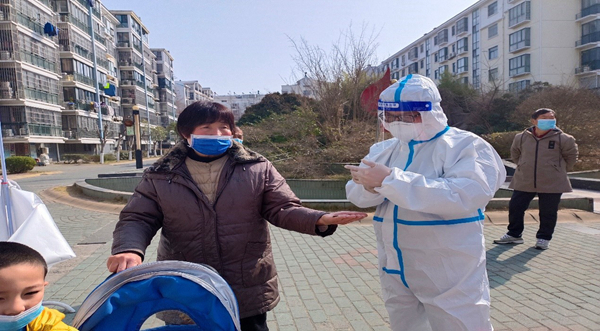 312日,黨曉峰主動與所在社區聯系,報名參加了社區抗疫志愿服務。每天,他都會到小區卡口執勤,防止人員流動;還會身穿防護服,與社區工作人員一起上門統計居民核酸檢測信息,這單元從一樓爬到頂樓,然后再爬隔壁單元,幾趟下來氣喘吁吁、汗流浹背。
