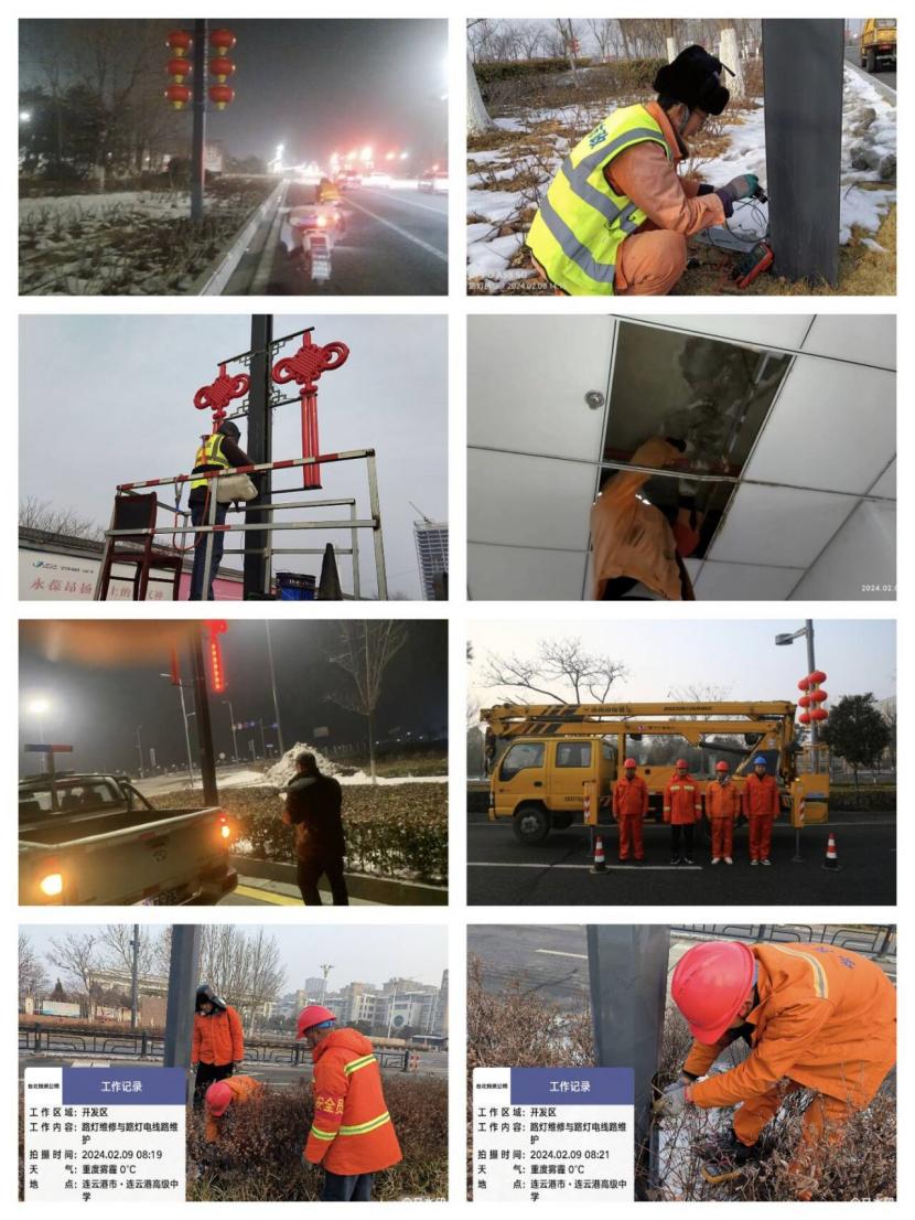 ? ? 眼下正是農歷新春佳節家家團聚的好日子。在翔立分公司,有那么一群人依然堅守崗位,全年無休的服務于市民的出行和過節,默默的奉獻著自己照亮別人,他們就是路燈班組的路燈保障職工和紅燈籠、中國結等亮化景觀的維護工們。在節日的喜慶氛圍里,他們依然和平時一樣,每天晚上天黑時分準時準點來來到花果山大道、黃海大道等主干道路邊,一盞又一盞一絲不茍的檢查著路燈桿上的中國結和紅燈籠,發現有不亮的立即記錄在筆上本上做好標記,及時檢查是線路問題還是燈具的問題認真的加以維修,及時排除各類大小亮化故障,保障節日期間亮化燈具的正常運轉。該公司路燈班組全年365天無休,每天晚上檢查各條道路的路線,白天及時維修,他們用點亮自己照亮別人的路燈精神服務于開發區居民一年四季的平安出行,開辟了一條又一條“金光大道”,獲得了社會各界的交口稱贊。
