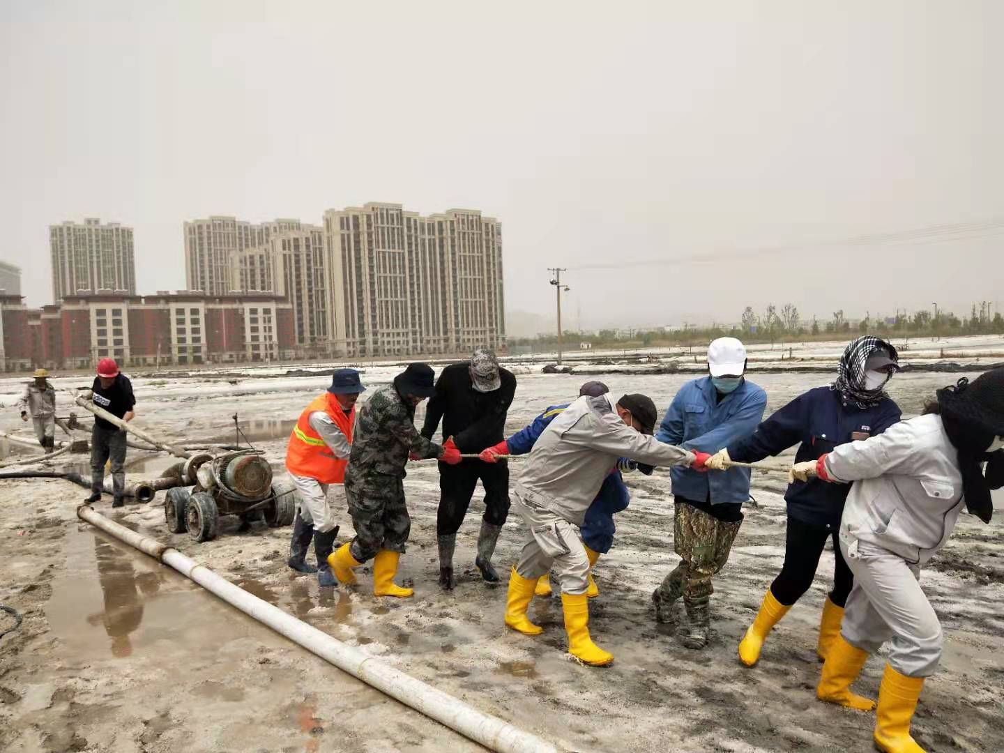 58日上午,海州灣公司在扒鹽現場,利用搶修扒鹽機械的間隙,組織當班職工迅速傳達了投資公司“大干紅五月,再創新佳績”動員大會會議精神,積極宣貫投資公司政策和鹽鈣產業當前面臨的嚴峻形勢,并制定公司大干紅五月小指標勞動競賽方案,開展職工勞動技能大比武,明確公司五月份經濟指標,動員全員要團結奮進,樹立榮辱與共的集體榮譽感,進一步凝聚奮進力量,提升干群士氣,全力沖刺五月份扒鹽10000噸、排鹵60000方、實現營業收入260萬元的經濟目標,掀起大干紅五月的熱潮,營造齊心協力、大干快干的良好局面。