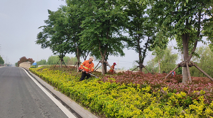 連日來,瑞南分公司瞄準二季度綠化管養工作目標,有序推進清除雜草、修剪樹枝、打藥除蟲、綠化垃圾清運等工作,全面提升轄區景觀攜手奮戰。